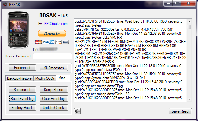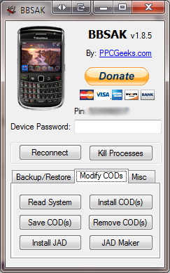 The Modify CODs tab includes functions designed for the more advanced Blackberry users. This tab will allow you to do a variety of thing revolving around individual CODs on your blackberry.